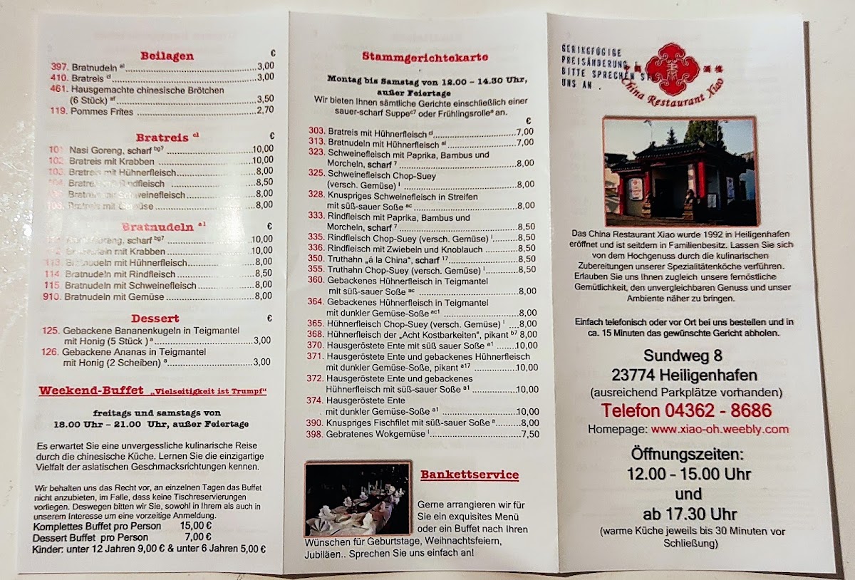 Welcome to China Restaurant Xiao, a hidden gem nestled in Heiligenhafen, Germany. This charming establishment offers an authentic taste of home-style Chinese cooking that transports your palate straight to China. The menu is an inviting blend of classic dishes, featuring fresh, homemade flavors that are sure to delight.